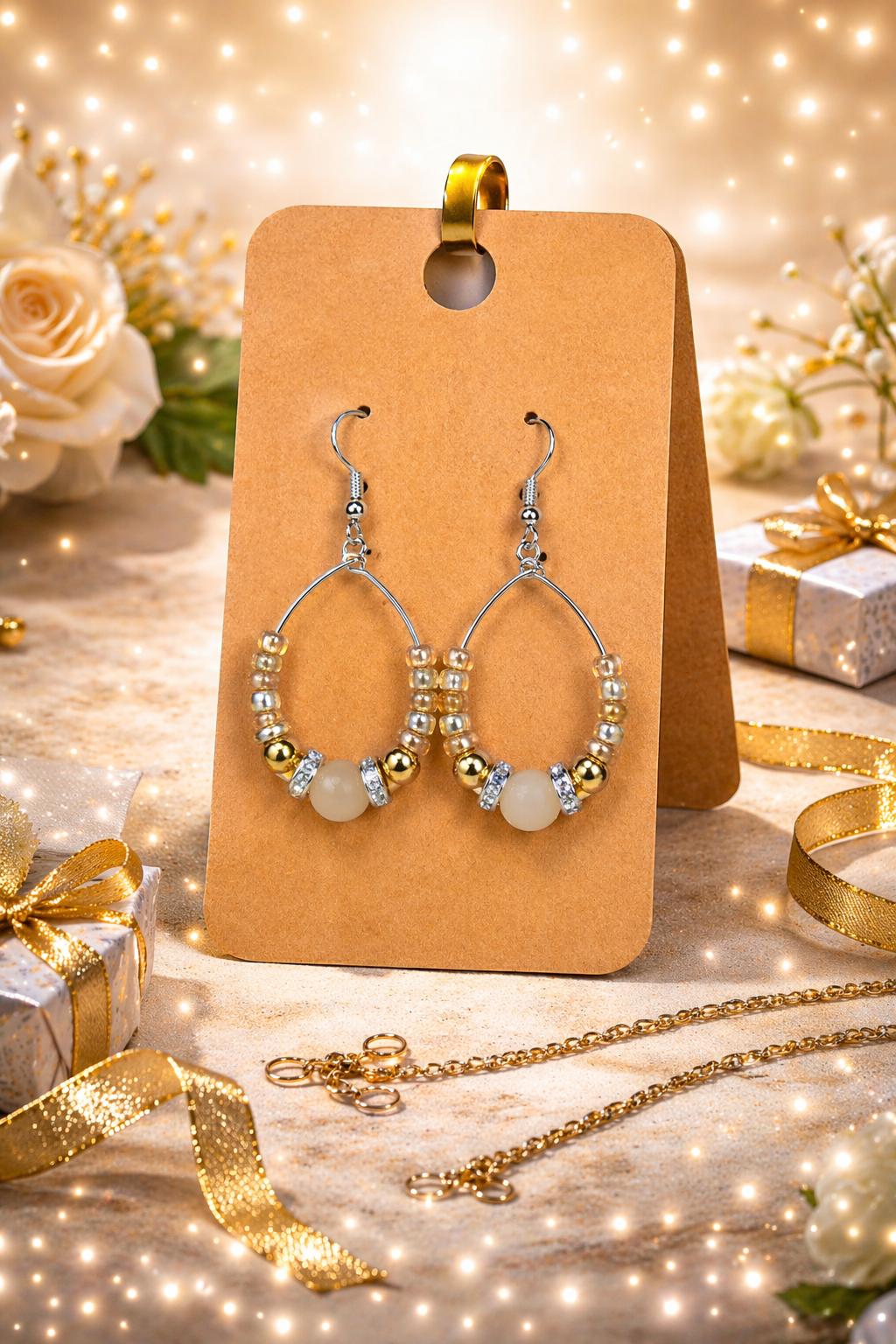 A soft blend of warm neutrals and subtle sparkle gives these beaded hoop earrings an effortless, polished glow. The mix of gold accents and luminous details catches the light beautifully without overpowering your look. Lightweight and versatile, they’re perfect for everyday wear or adding a touch of understated elegance to any outfit.